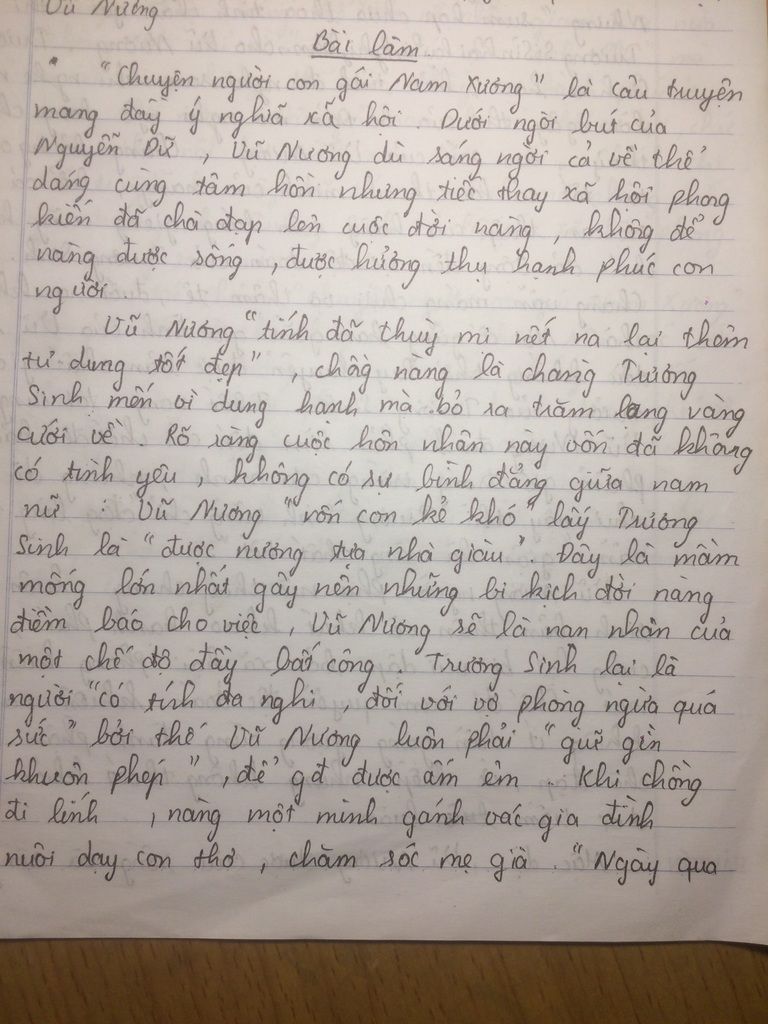 Đây không phải là hành động bột phát trong cơn nóng giận. Bởi Vũ Nương vốn là một người phụ nữ xinh đẹp nết na thùy mị, hiền thục,lại đảm đang tháo phát, thờ kính mẹ chồng rất mực hiếu thảo, một lòng một dạ chung thủy với chồng, hết lòng vun đắp cho hạnh phúc gia đình. Một con người như thế đáng ra phải được hạnh phúc trọn vẹn, vậy mà lại phải chết một cách oan uổng, đau đớn. Vậy nguyên nhân nào dẫn tới kết quả đáng buồn ấy?.