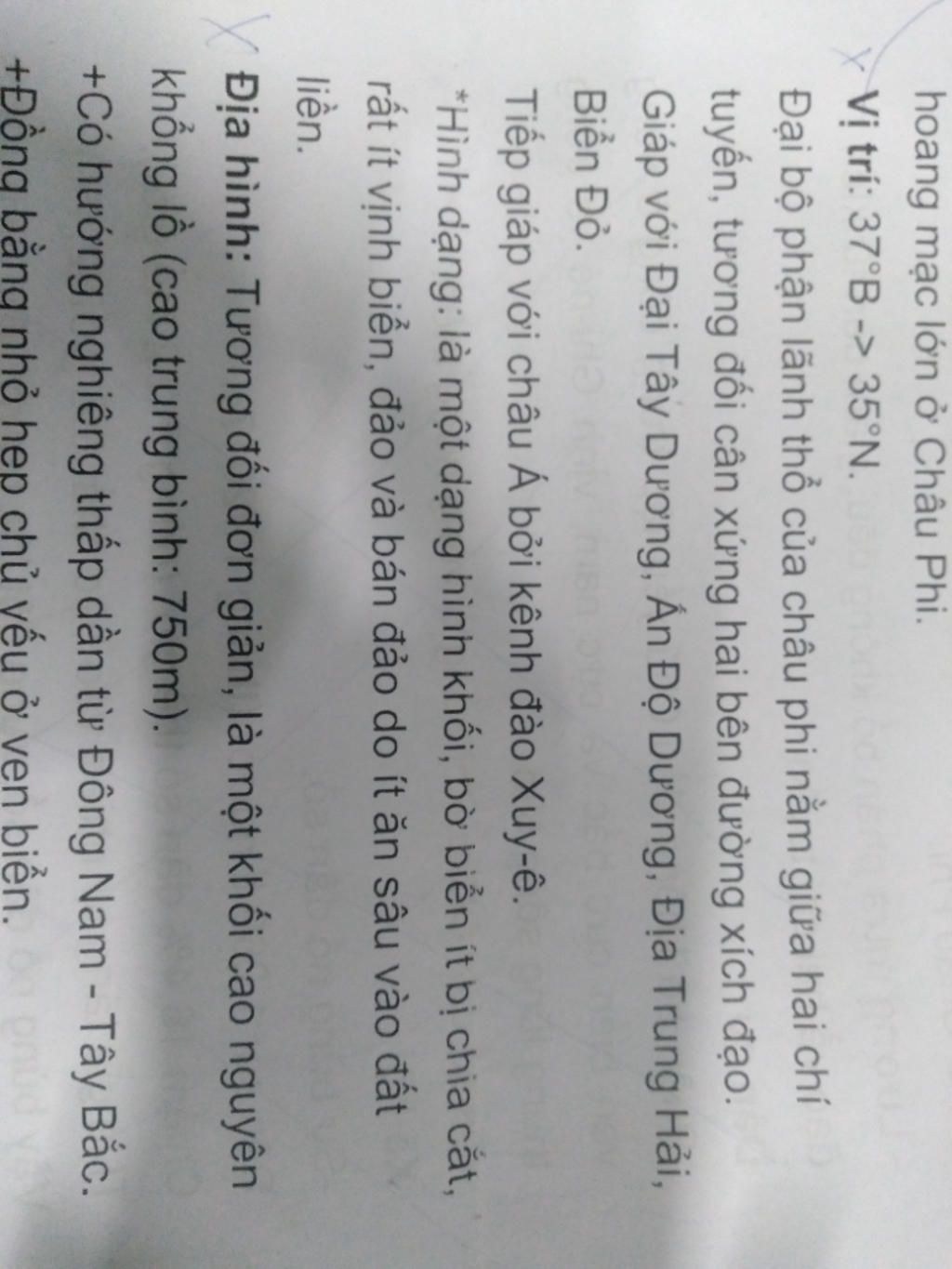 - vị trí: phía Bắc giáp Địa Trung Hải, phía Đông Bắc giáp biển Đỏ, hía Đông Nam giáp Ấn Độ Dương, phía tây giáp Đại Tây Dương
