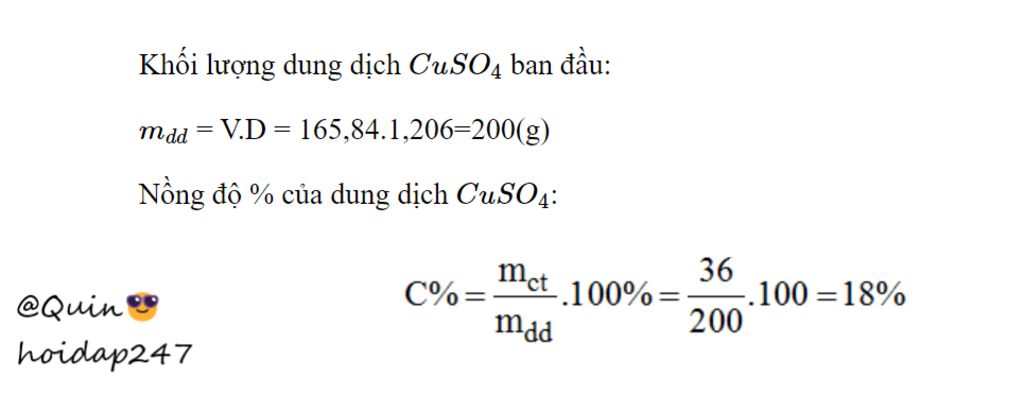 Nồng độ phần trăm của dung dịch CuSO4 ban đầu là