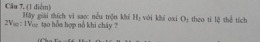 - Vì khi trộn 2 hỗn hợp khí Oxi và Hidro theo thể tích `V_(H_(2)) : V_(O_(2))` là `2:1` sẽ tạo ra 1 tiếng nổ mạnh khi cháy vì khi trộn hỗn hợp hidro và oxi ta thấy hỗn hợp cháy rất nhanh và tỏa nhiều nhiệt và làm giãn nở không khí đột ngột nên gây ra sự chấn động không khí, đó chính là những tiếng nổ lách tách mà ta nghe được