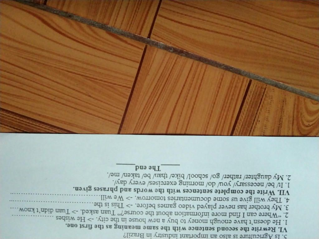 VI, Rewrite the second sentences with the same meaaning as the first one