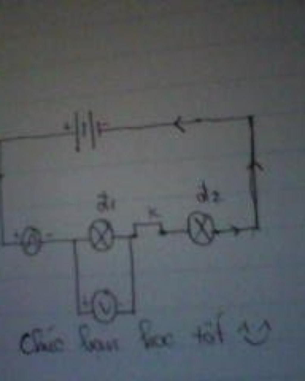 Hiệu điện thế $U_{1}$ giữa $2$ đầu bóng đèn $Đ_{1}$ là:
