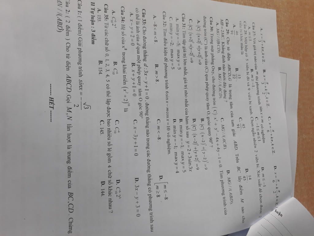 ******.... D. x= A. x-+ kr,ke z. B. x C. x=+ ka, k eZ. Juận Cầu 27: Với giá trị nào của m thi phương trình sin x = m có nghiệm A. msl. C. -Ismsl D. ms-1 B.