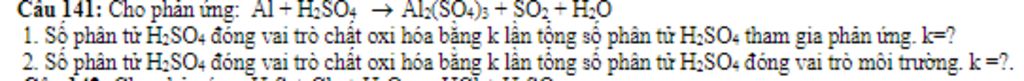 2Al + 6{H_2}S{O_4} \to A{l_2}{(S{O_4})_3} + 3S{O_2} + 6{H_2}O\\