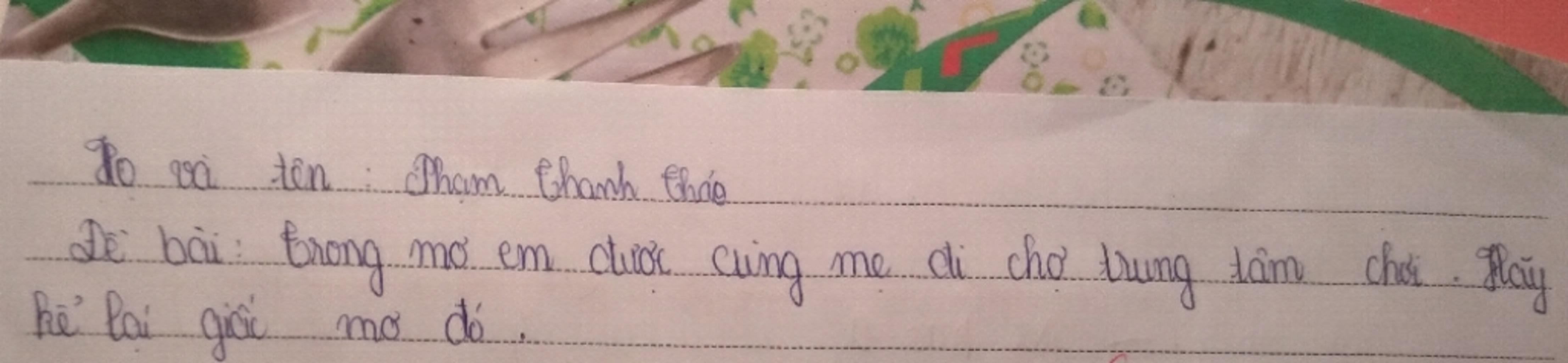 Thì ra đó là tiếng nói của mẹ. Tôi chợt nhận ra đó chỉ là một giấc mơ. Vừa đi bộ đến trường, tôi vừa nghĩ lại mà vừa tiếc nuối.Nhưng tôi cũng rất vui vì bà tiên đã cho tôi được tham quan chợ trung tâm trong giấc mơ