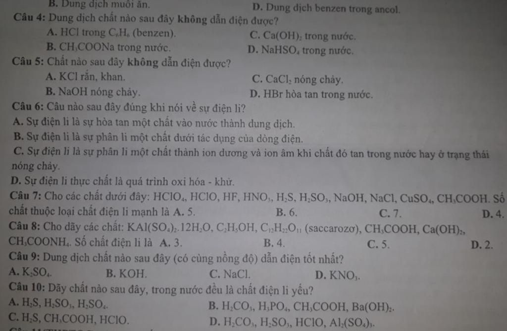 7)A HClO4 HNO3 NaOH NaCl CuSO4
