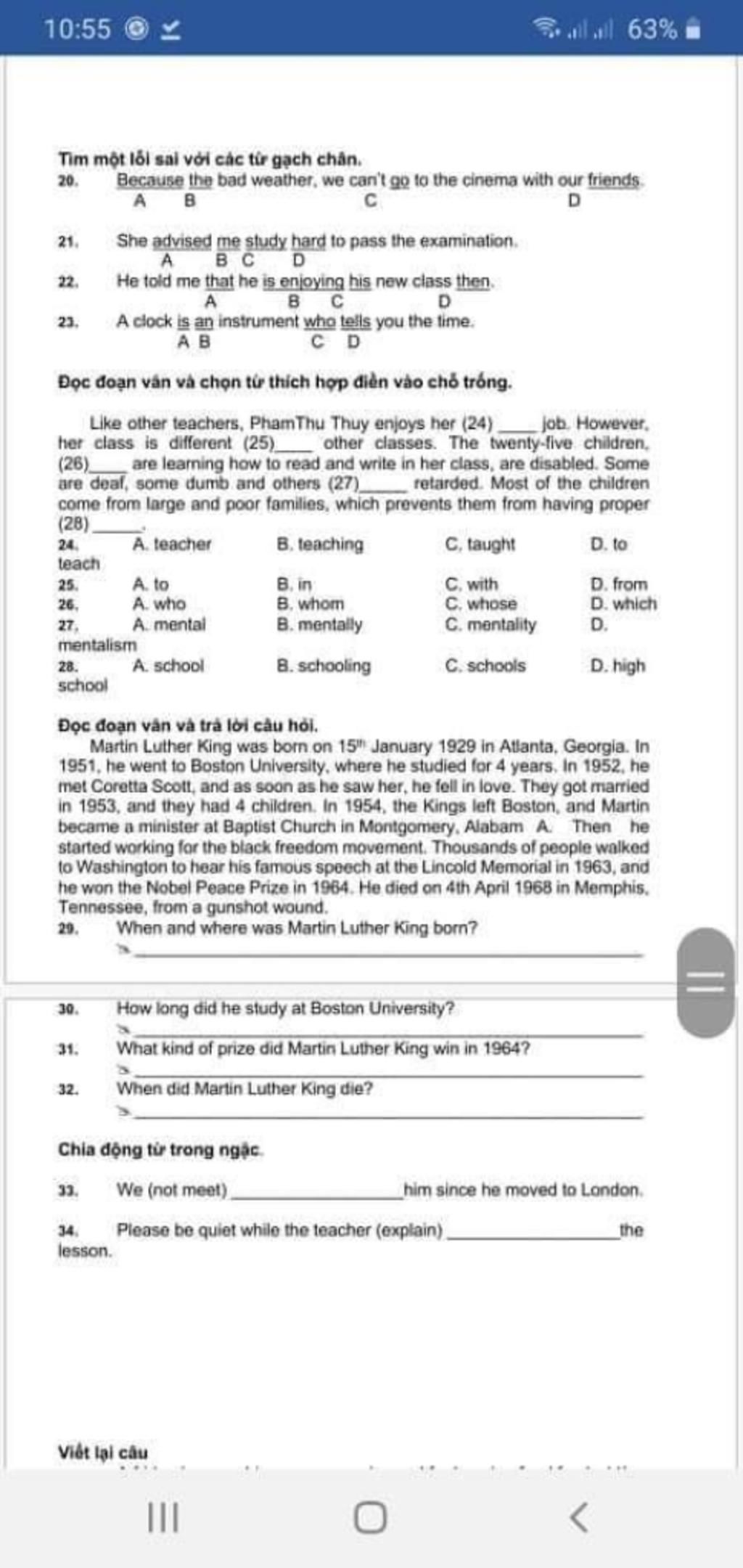 Viết lại câu