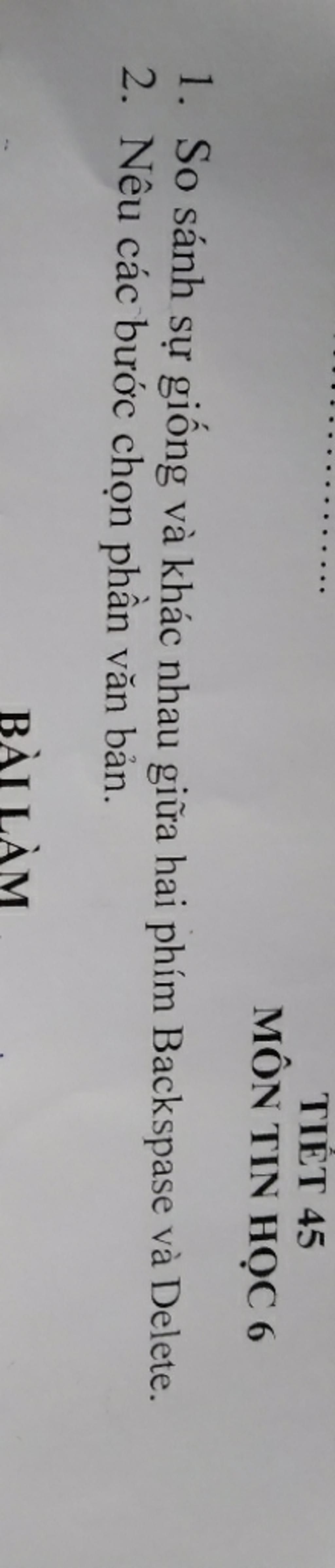 khác phím backpase dùng để xóa kí tự trước dấu" | "