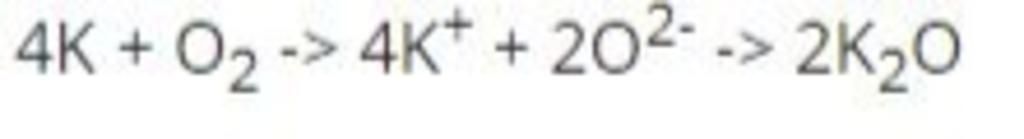 4K + O2 -> 4K+ + 2O2- -> 2K2O