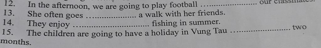 ( ta chọn are vì đây là thì hiện tại tiếp diễn, trong câu cần có ít nhất 1 động từ hay ta có công thức s + is,am,are + v-ing + o , dịch câu đc họ đang thưởng thức câu cá vào mùa hè.)