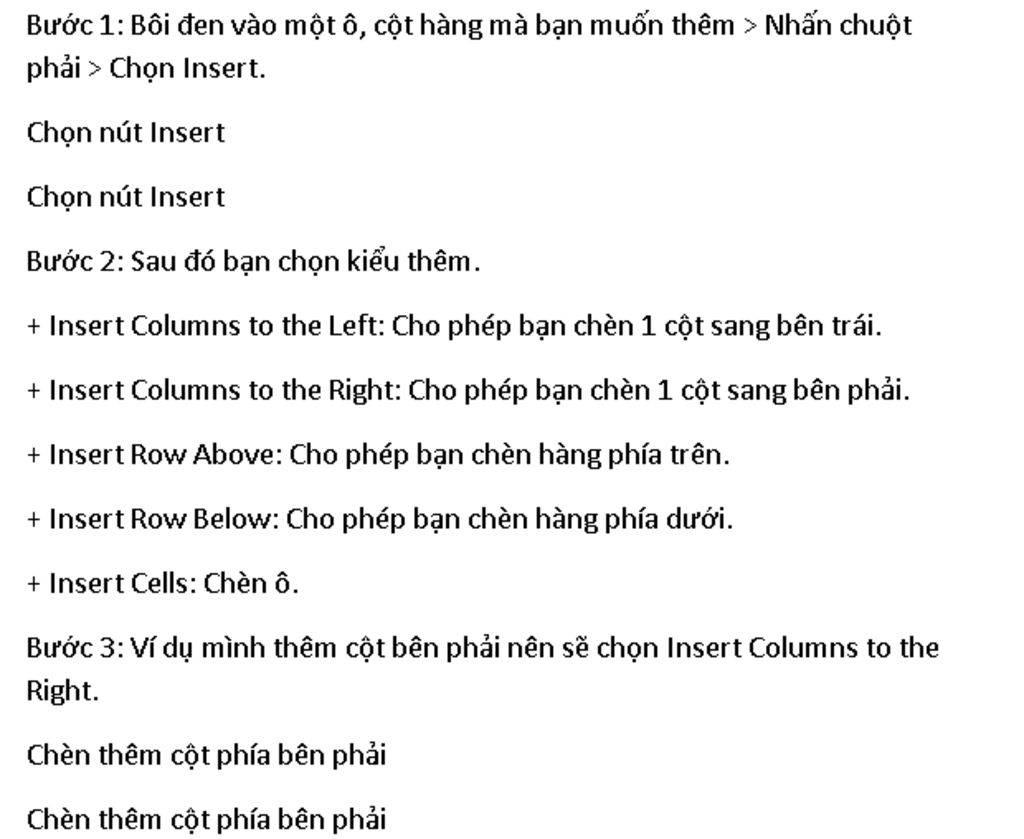 Bước `1:` Bôi đen cột mà muốn thêm cột mới vào phía bên trên (dưới).