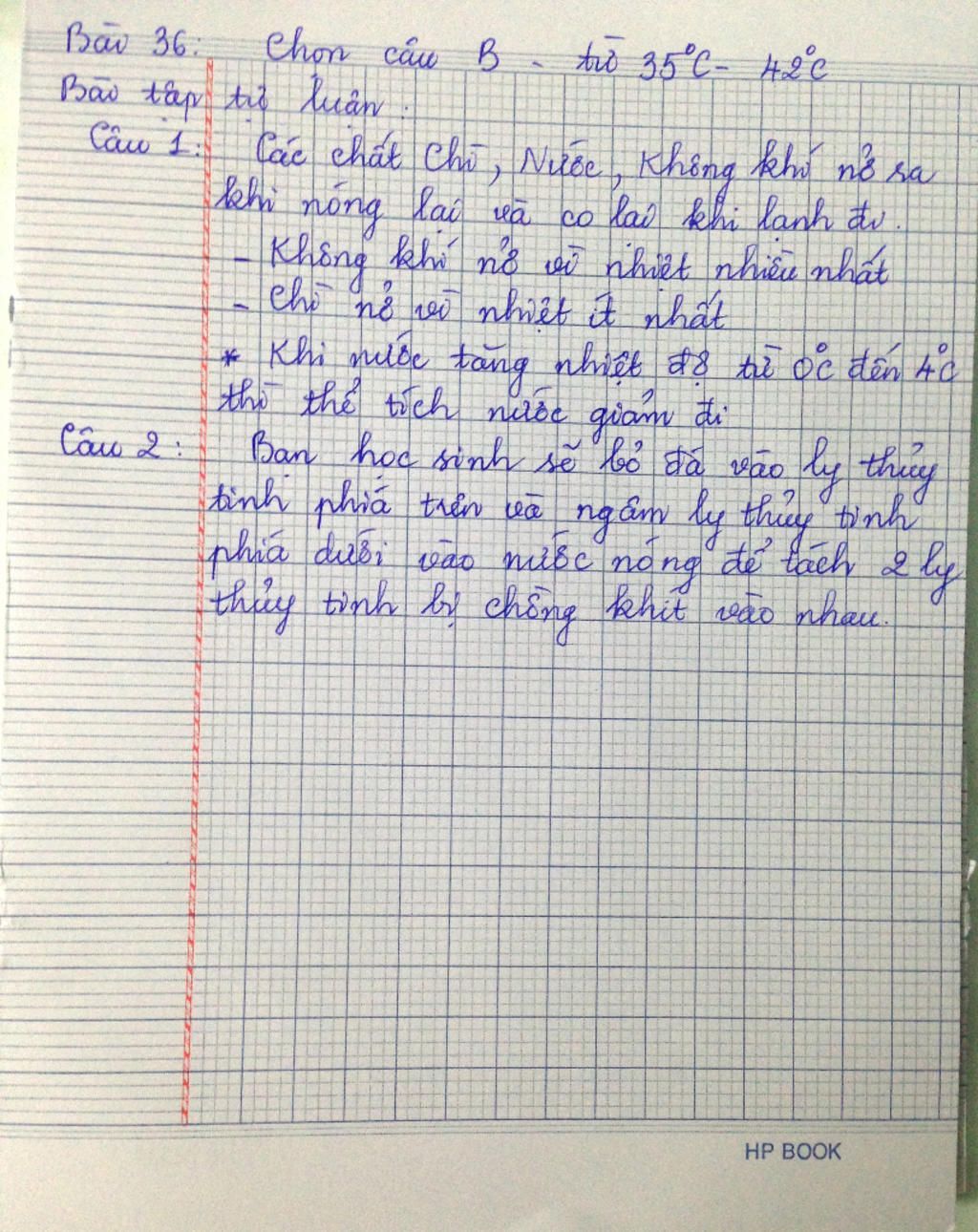 2. Bạn ấy có thể: Cho nước đá vào cốc nằm bên trong để cốc này co lại, đồng thời nhúng cốc ngoài vào nước nóng để cốc này nở ra. Nhờ đó bạn ấy có thể lấy hai cốc ra khỏi nhau dễ dàng.