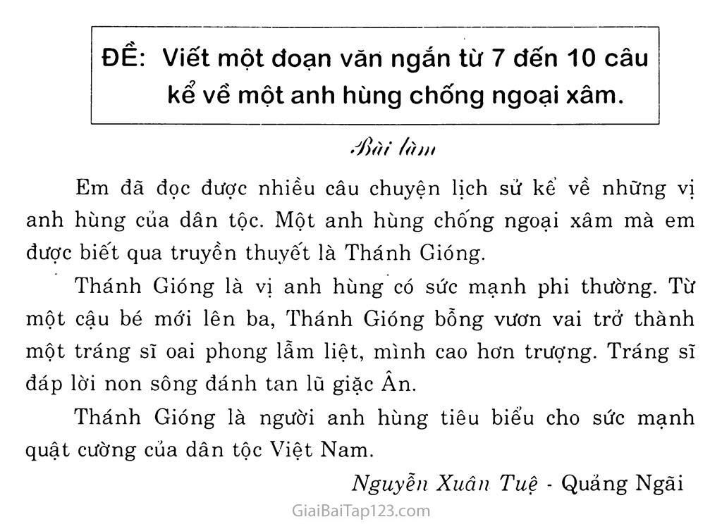 Trong số các anh hùng mà em biết thì anh Kim Đồng là người em ngưỡng mộ và yêu quý nhất . Kim Đồng tên thật là Nông Văn Dền . Anh là người Cao Bằng , anh hi sinh khi mới 13 tuổi . Trong chiến tranh anh có nhiệm vụ liên lạc , đưa thư cho các chiến sĩ . Nhiều lần anh thoát khỏi bọn lính một cách thông minh . Anh rất dũng cảm , anh là tấm gương đáng quý để chúng ta noi theo .