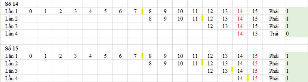 Dãy các số từ $0$ đến $15$ số thì mỗi số được chuyển thành một dãy gồm bốn kí hiệu $0$ và $1$
