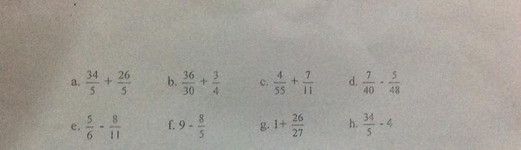 h.34/5 - 4 = 34/5 - 4/1 = 34/5 - 20/5 = 14/5