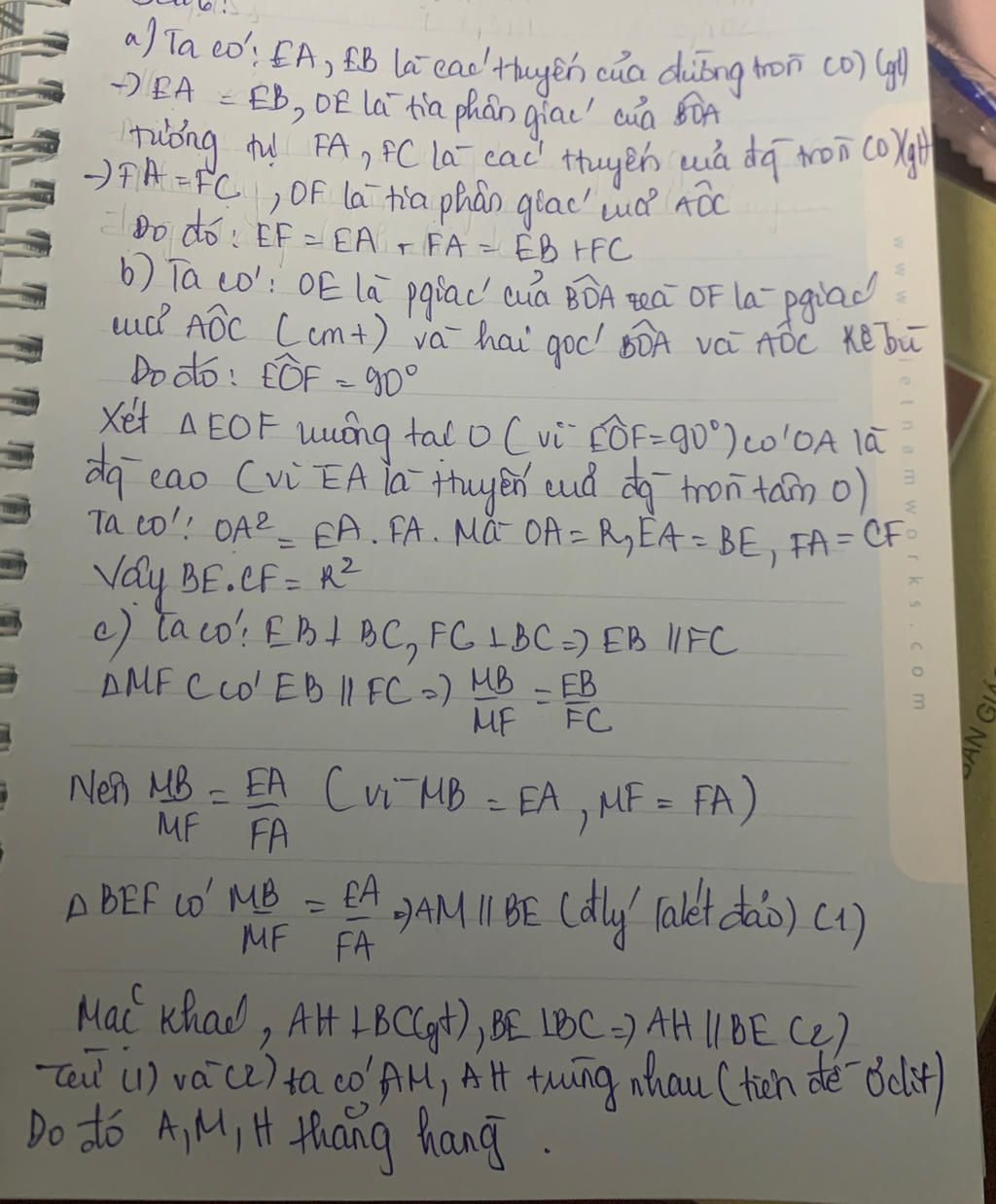 Giúp tui câu này với! Làm đúng và đầy đủ hứa sẽ trả công!6. Cho duong tron (O) đuờmg kinh BC2R Lấy điểm A thuộc đưong tron sao cho AB AC. Tiếp tuyến tại A cấr