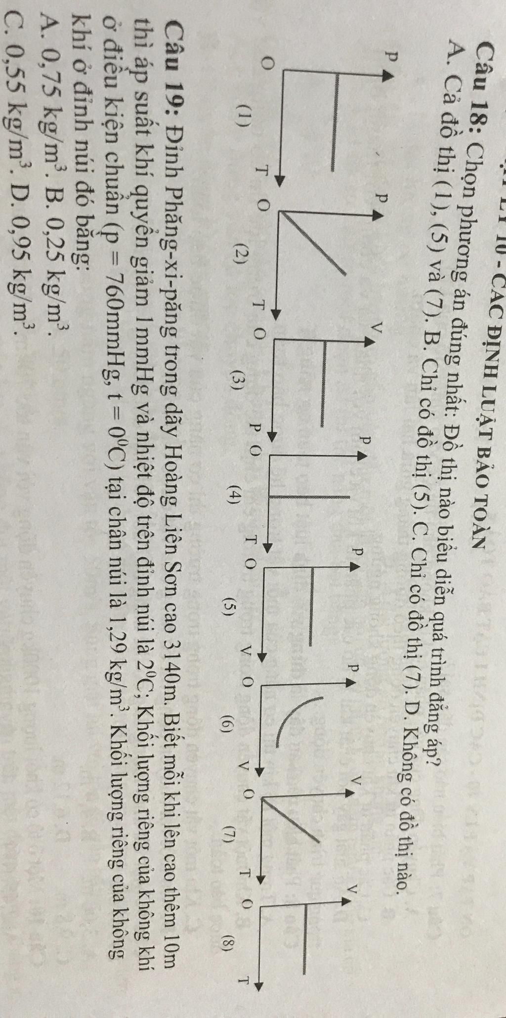 Giải thích các bước giải:Hình 1, 5 là do áp suất không đổi nên đường đẳng áp luôn vuông góc vs P. Câu 19 mk k bt giải nhưng bt đáp án là câu A.
