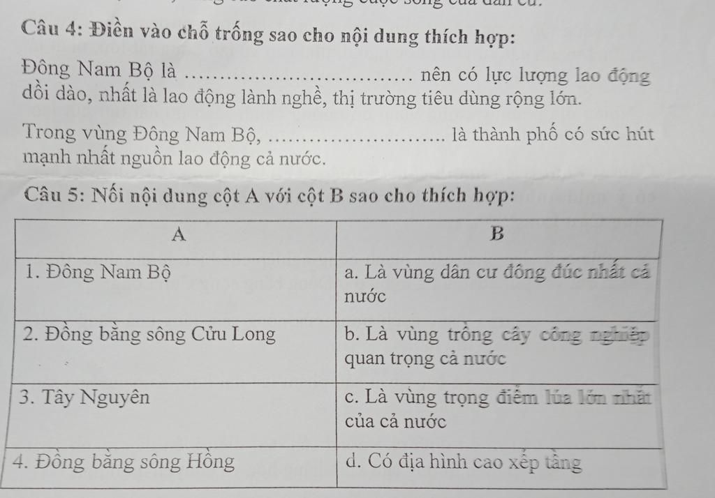 4:a -> Đồng Bằng sông Hồng là vùng dân cư đông đúc nhất cả nước