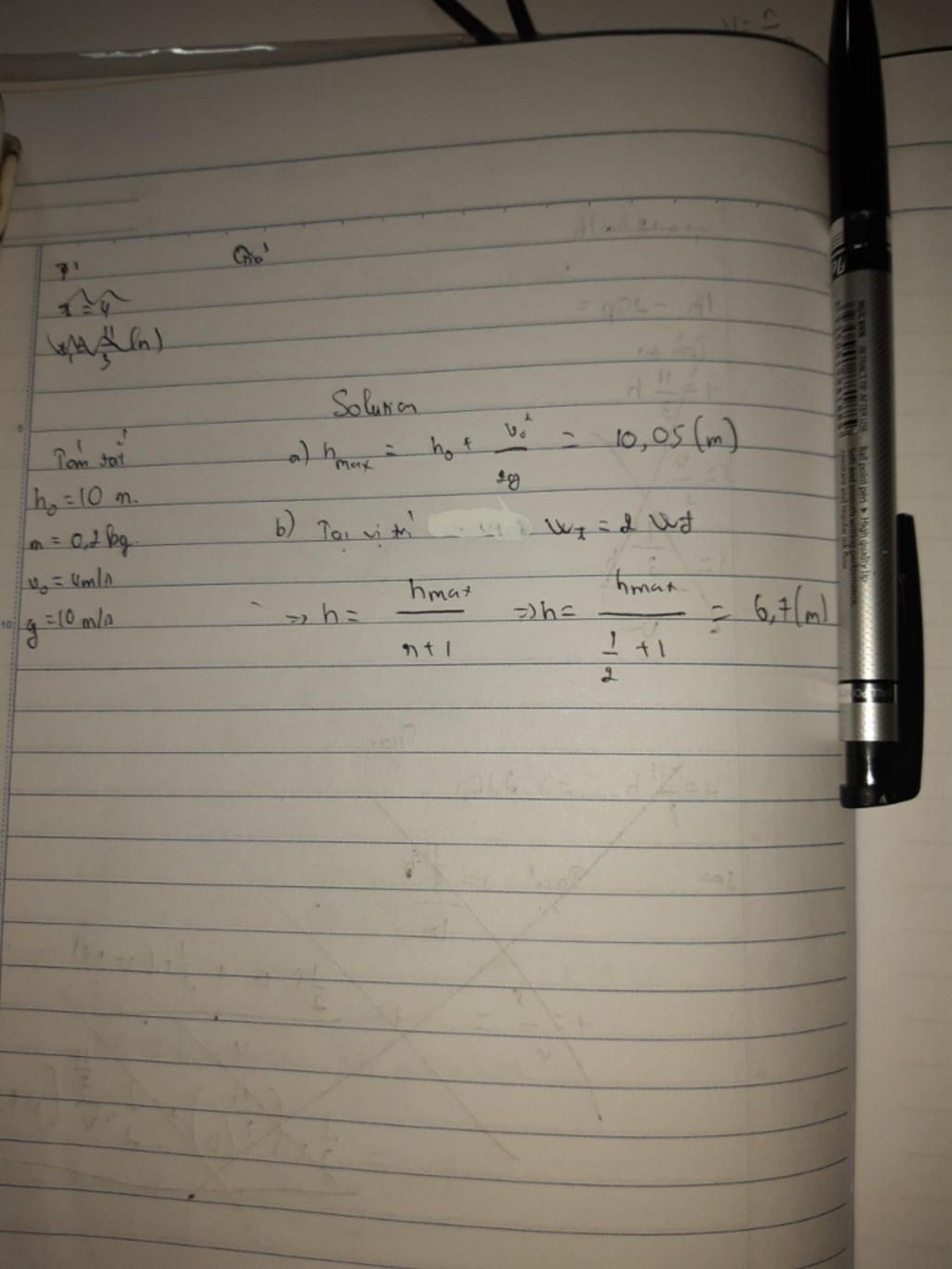Vậy độ cao lớn nhất vật đạt được là 10 + 0,8 = 10,8m