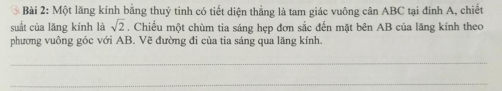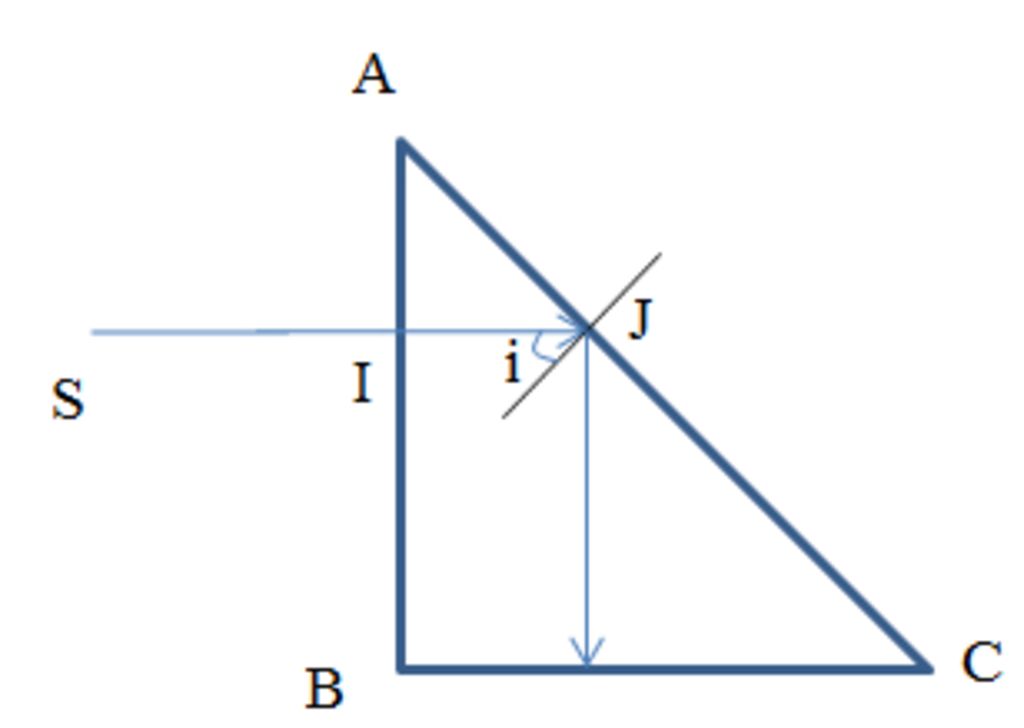 \(\sin {i_{gh}} = \dfrac{1}{n} = \dfrac{1}{{\sqrt 2 }} \Rightarrow {i_{gh}} = {45^o}\)