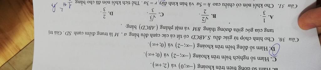 $\Rightarrow \tan\widehat{MBH}=\dfrac{\dfrac{a\sqrt2}{4}}{\dfrac{3a\sqrt2}{4}}=\dfrac13$