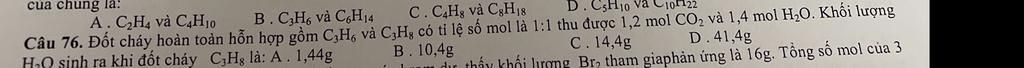 {n_{{C_3}{H_8}}} = {n_{{H_2}O}} - {n_{C{O_2}}} = 1,4 - 1,2 = 0,2\,mol\\