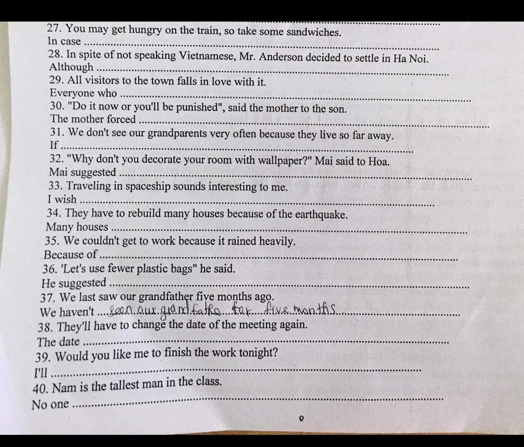 28. Although Mr.Anderson spoke Vietnamese, he decided to settle in Ha Noi.