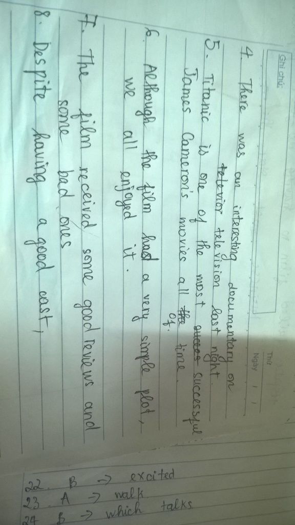 ở dưới là đáp án của mình,riêng câu 8 mình nghĩ được vậy thôi