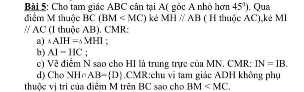a, MH ║ AB ⇒ $\widehat{IHM}$ = $\widehat{HIA}$ (so le trong)