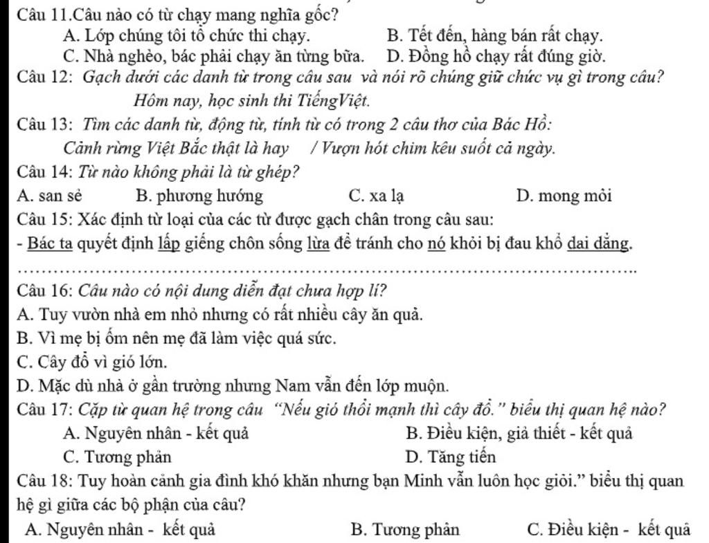 - Đáp án : Lớp chúng tôi tổ chức thi chạy.