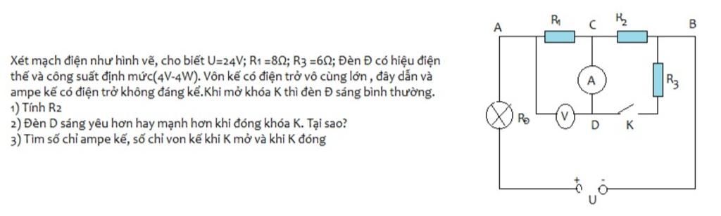 Khi khóa $K$ mở thì đèn sáng bình thường