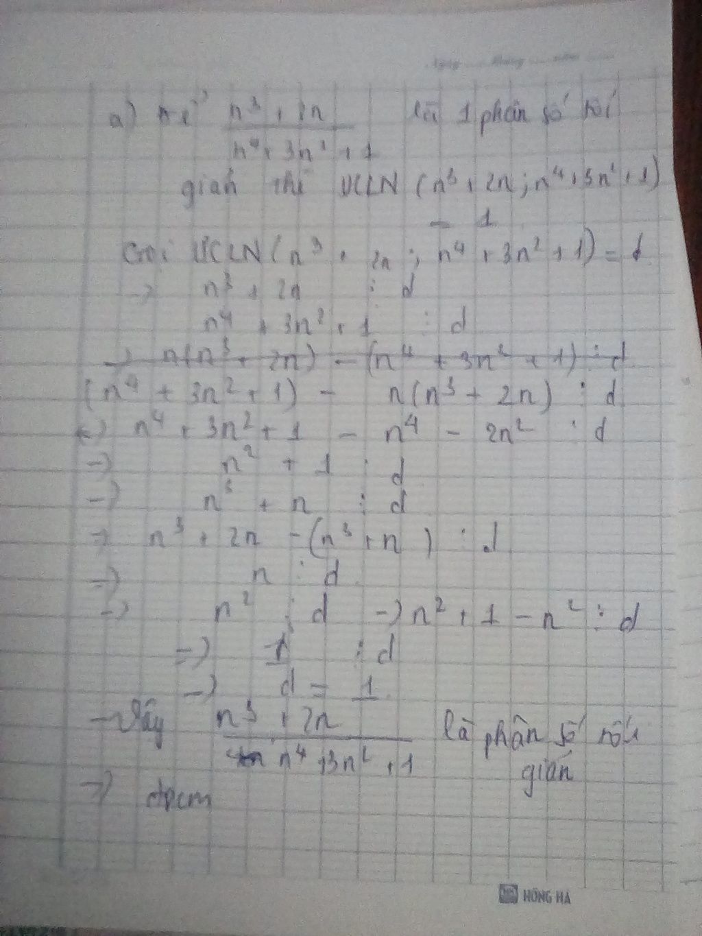 Vậy $\frac{n^{3}+2n}{n^{4}+3n^{2}+1}$ là phân số tối giản với mọi n ∈ N