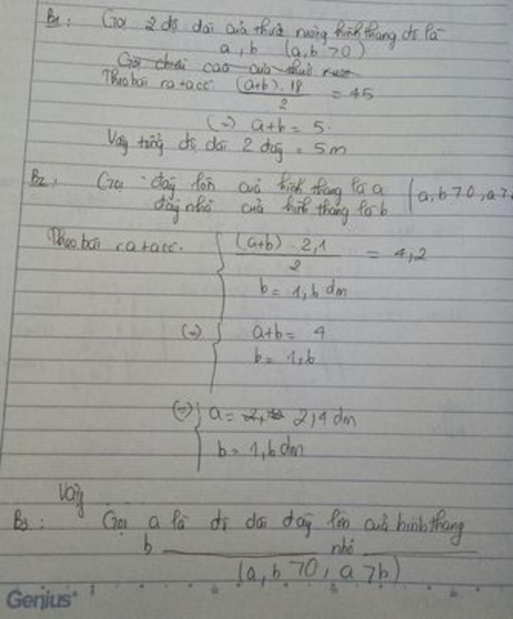 Đáp số : Đáy lớn : `10,8m`
