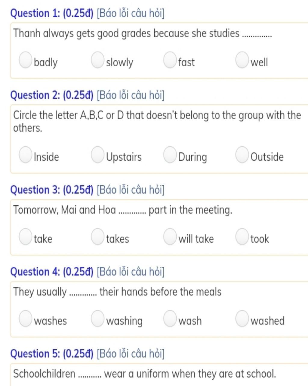 `⇒` Dấu hiệu "usually" chỉ thì HTĐ, cấu trúc là: S + usually + V(s/es)