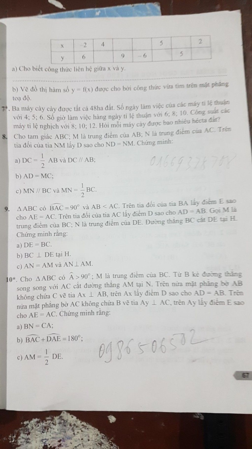 4. 5. X. 6. 9. a) Cho biết công thức liên hệ giữa x và y. b) Về đô thị hàm số y toa đo. f(x) được cho bởi công thức vira tim trên mật phảng 7. Ba máy cày c