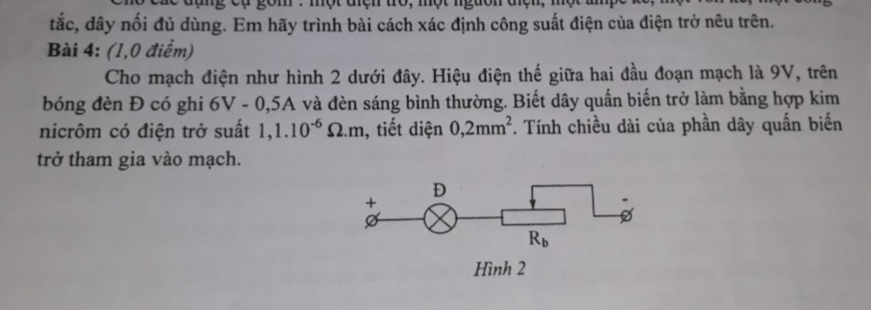 Cường độ dòng điện qua biến trở bằng cường độ dòng điện qua bóng đèn: I = 0,5A