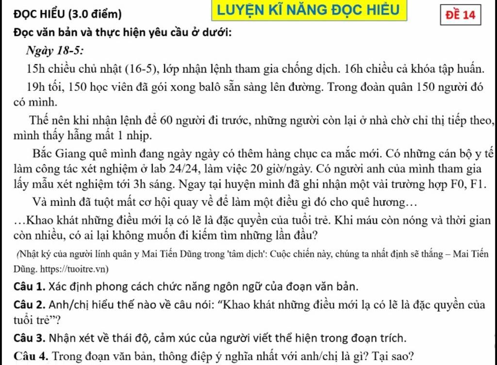 Thái độ, cảm xúc của người viết là thái độ khát khao cống hiến, sẵn sàng làm việc và công tác tại tuyến đầu chống dịch và tình cảm khát khao tốt đẹp, được cống hiến cho tổ quốc, quê hương, bảo vệ sức khỏe cộng đồng