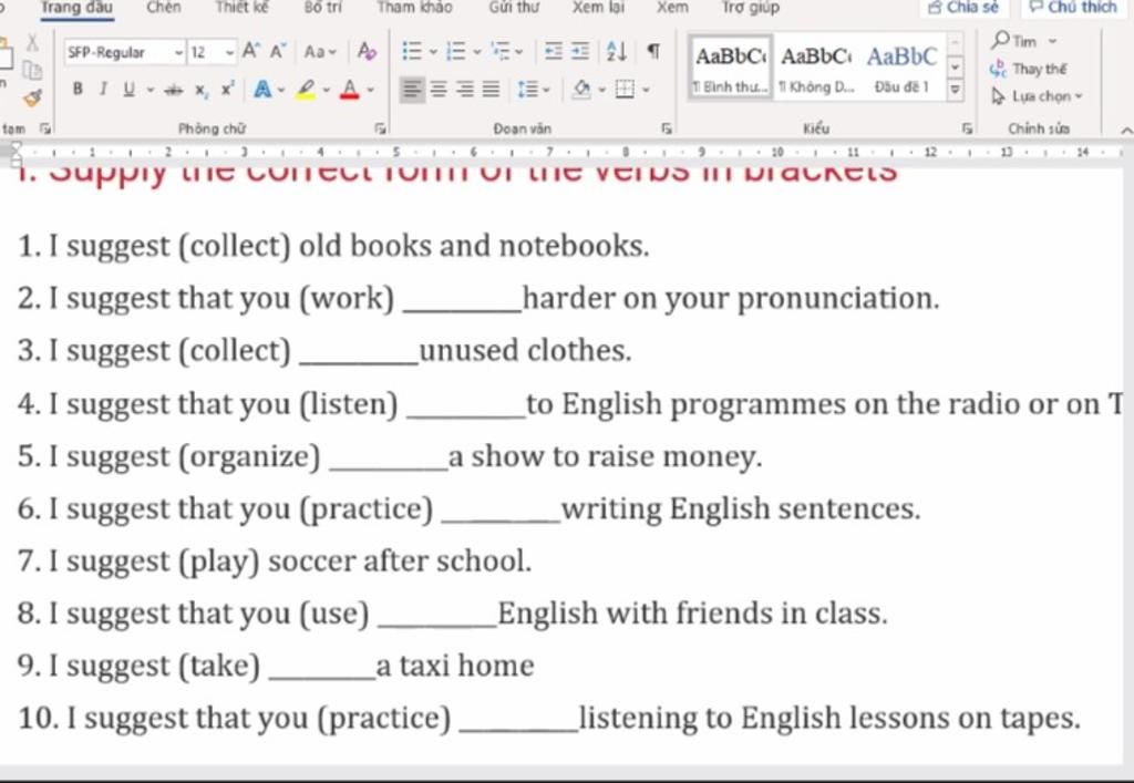+) S + suggest/suggested/.... + that + S + (should) + V (nguyên thể)