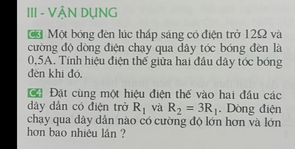 =>dòng điện qua dây dẫn R 1 có cường độ lớn hơn gấp 3 lần cường độ dòng điện qua R2