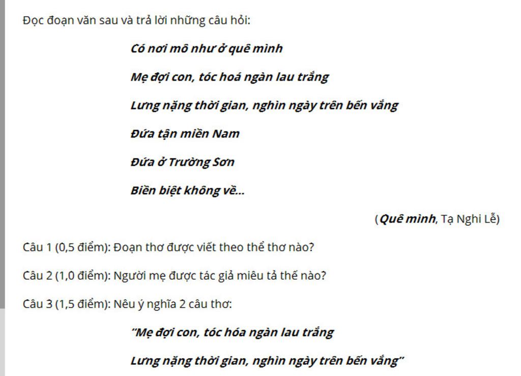 Người mẹ được tác giả miêu tả: đợi con, tóc hóa ngàn lau trắng, lưng nặng thời gian, nghìn ngày trên bến vắng.