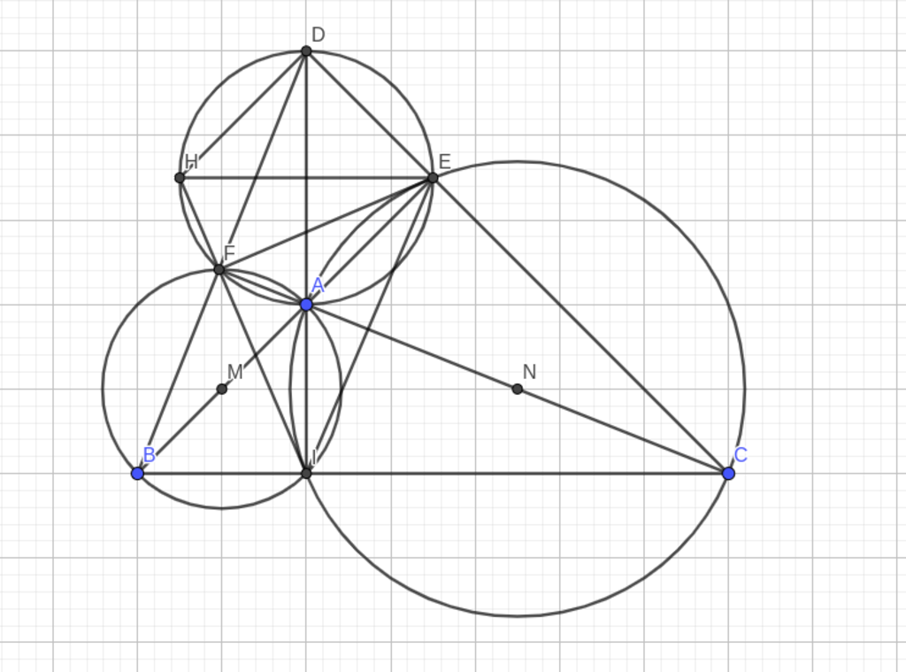 d.Ta có $\widehat{AFD}=\widehat{AED}=90^o\to \Diamond AEDF$ nội tiếp đường tròn đường kính AD