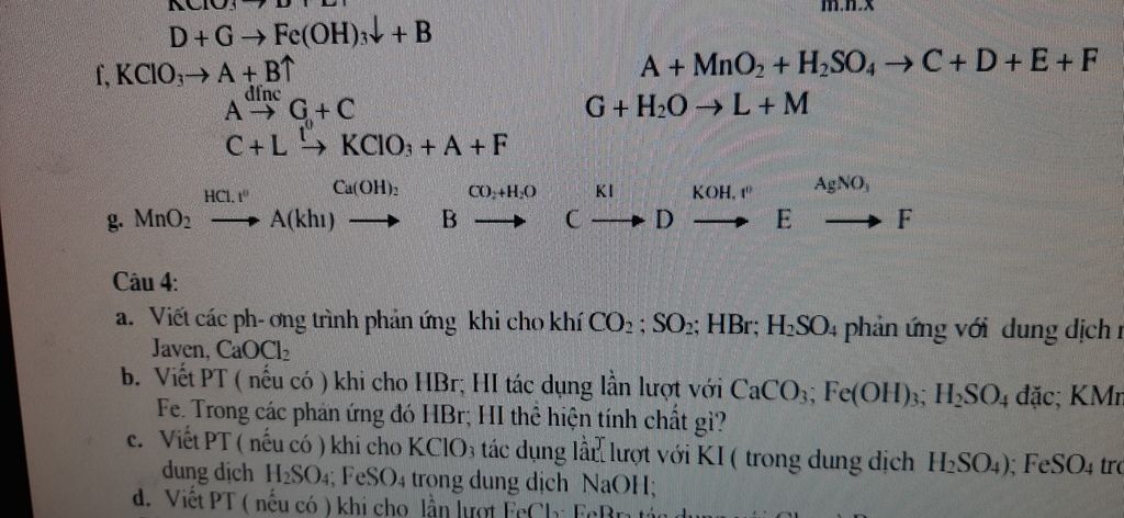 3/ Ca(ClO)2 + CO2 + H2O → CaCO3 + 2HClO