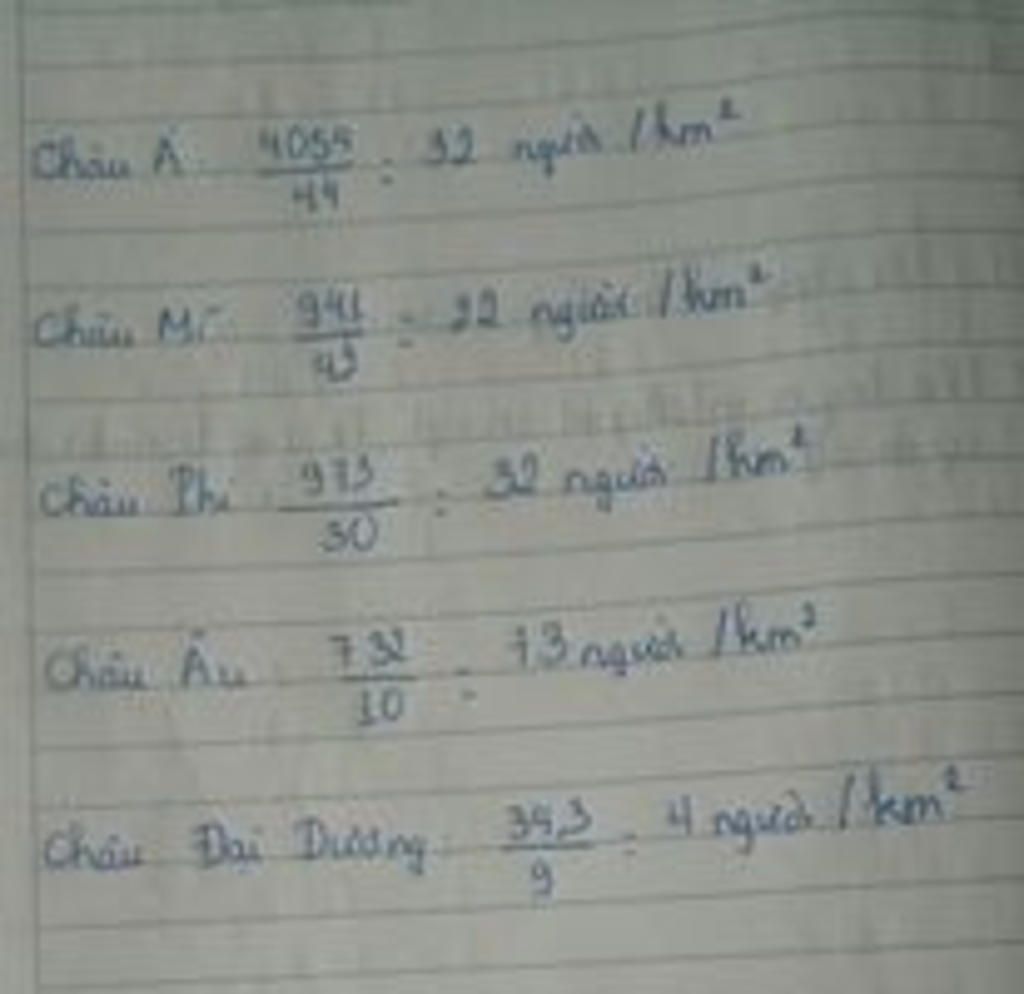 ♧ Mật độ dân số của các châu lục: