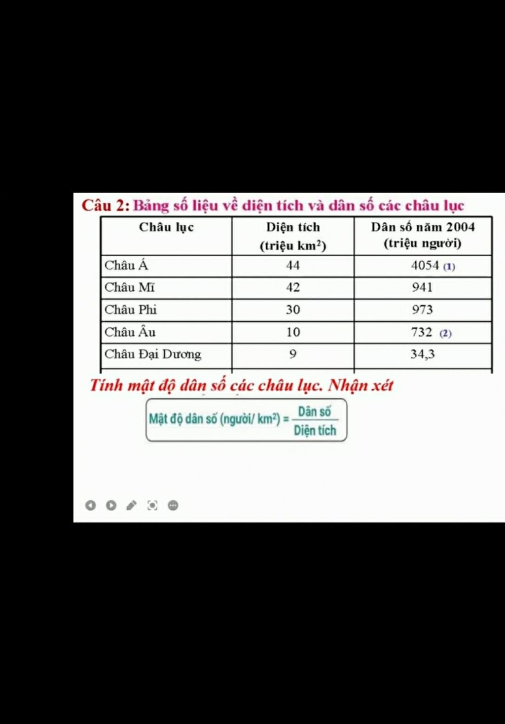 $\frac{Dân số}{Diện tích}$ =MĐDS