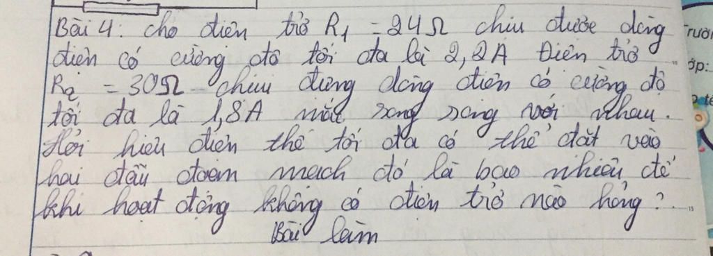 Vì `I_1>I_2` thì sẽ không chịu được cường độ dòng điẹn nên : `I_{max}=I_2=1,8A`