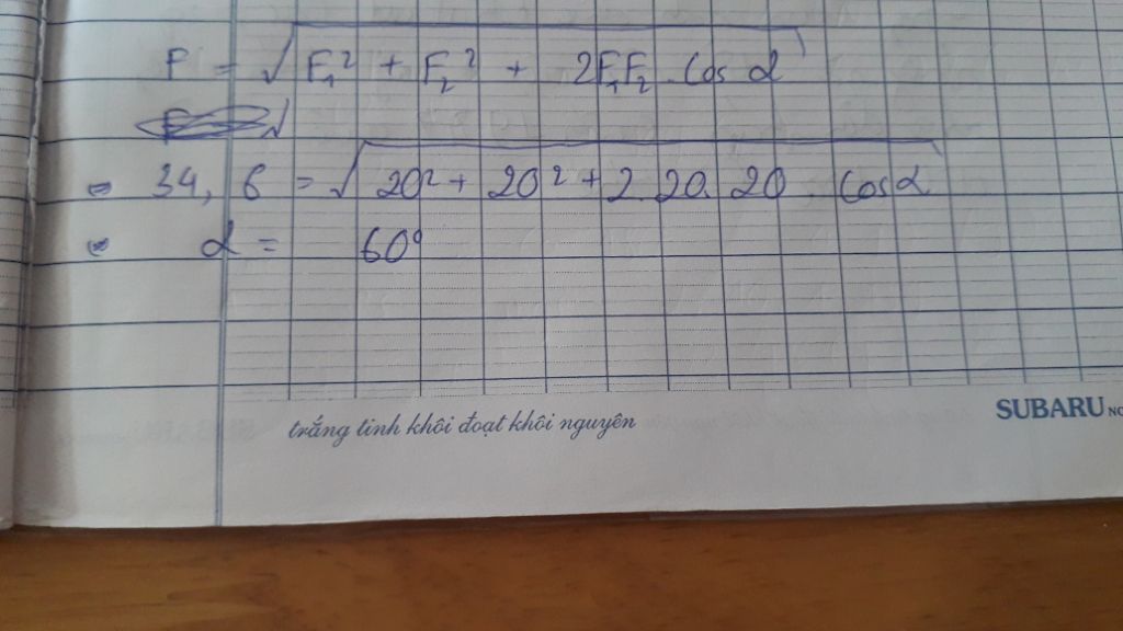 \Leftrightarrow 34,{6^2} = {20^2} + {20^2} + 2.20.20.\cos \alpha \hfill \\