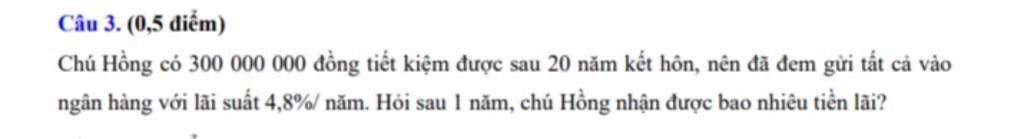 Vậy sau một năm chú Hồng nhận được `14 400 000` (đồng)