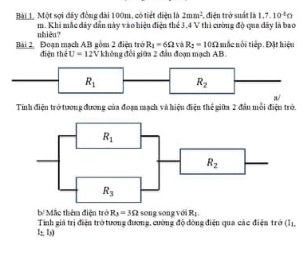 Hiệu điện thế giữa đầu mỗi điện trở $R_{1}$, $R_{3}$ là: