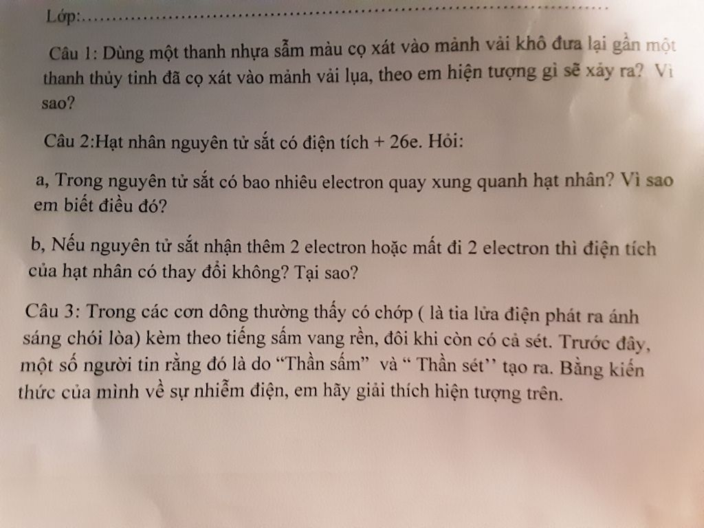 thủy tinh cọ sát vào vải lụa ⇒ thủy tinh nhiễm điện dương