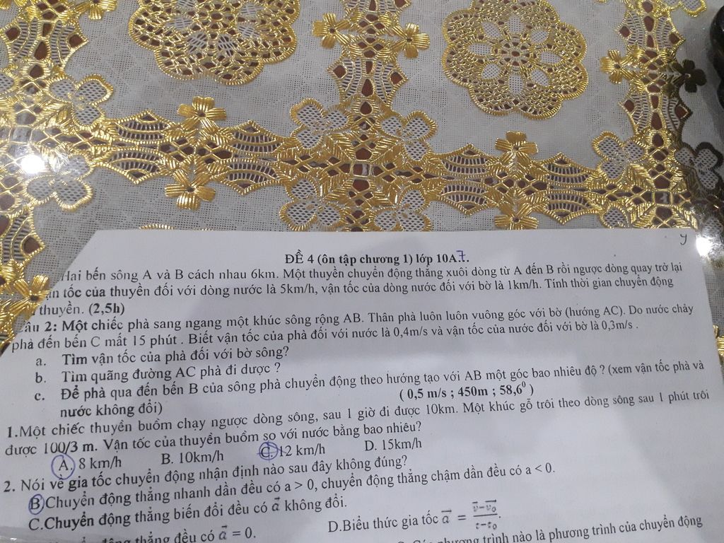 Giải thích các bước giải: gọi 1 là phà, 2 là nước và 3 là bờ . Mà trong đề bài nhắc đến vuông góc suy ra ta có công thức V13 = căn bậc hai của V12^2 + V23^2, trong đề có cho V12=0,4 m/s và V23=0,3 m/s